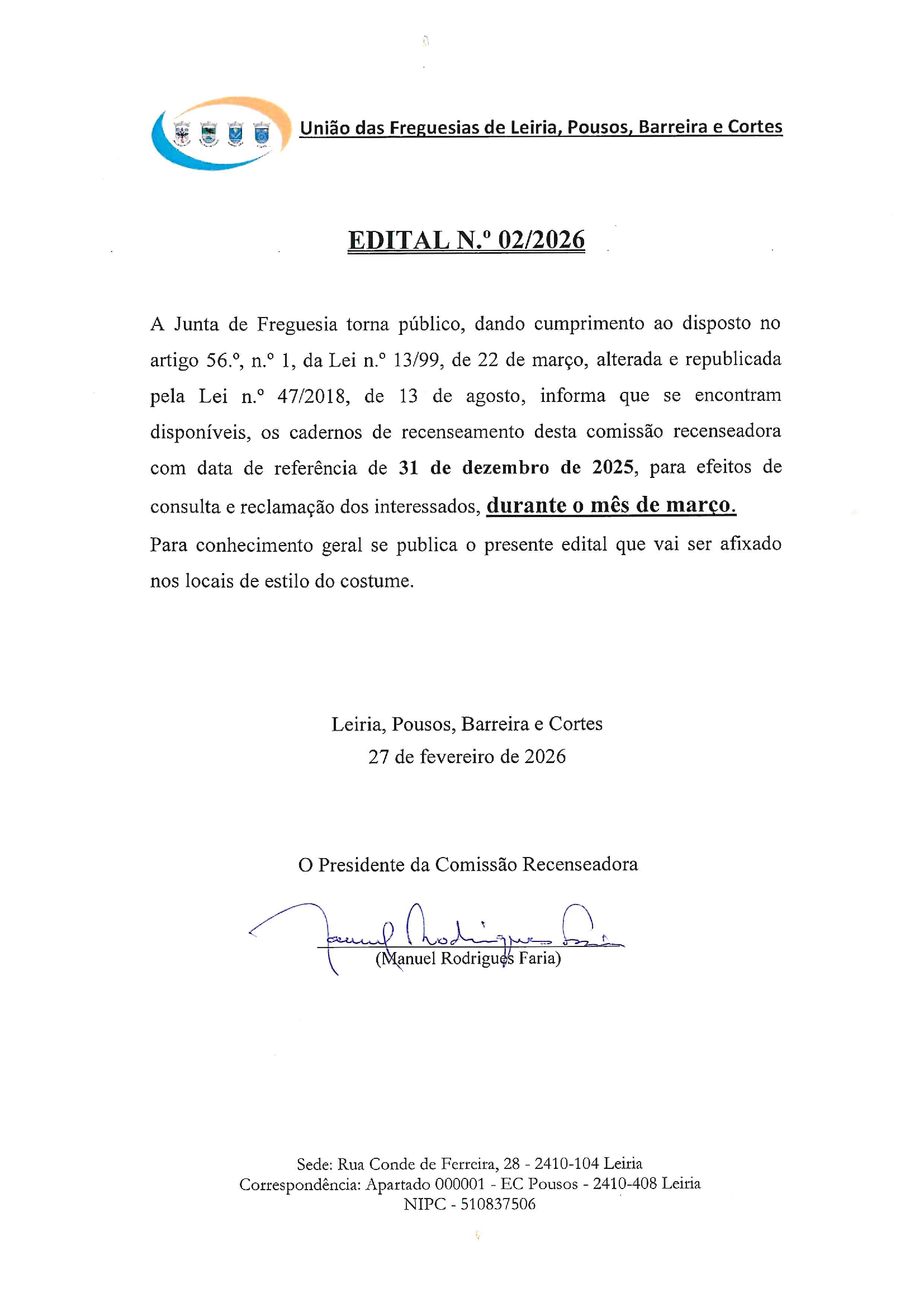 A reforma administrativa determinou que a nossa união se tornasse na freguesia com mais população e com a maior área geográfica do distrito de Leiria e, por isso, torna-se fundamental reforçar a componente de informação e comunicação direta e rápida com toda a população residente.
